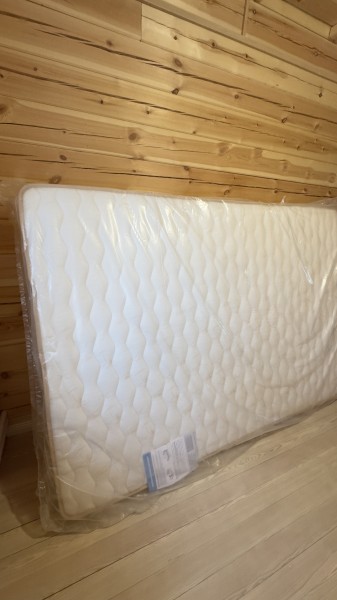 Новый матрас разносторонний: средний/высокий. Высота 22см. Натуральный лен. Внутри 5-зональный пружинный блок и биококос. Матрас не скручен. Возможна доставка ?