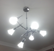 Недавняя покупка на новую кухню, люстра в стиле хай-тек, ничего лишнего. Плафоны можно двигать и направлять в любую сторону.