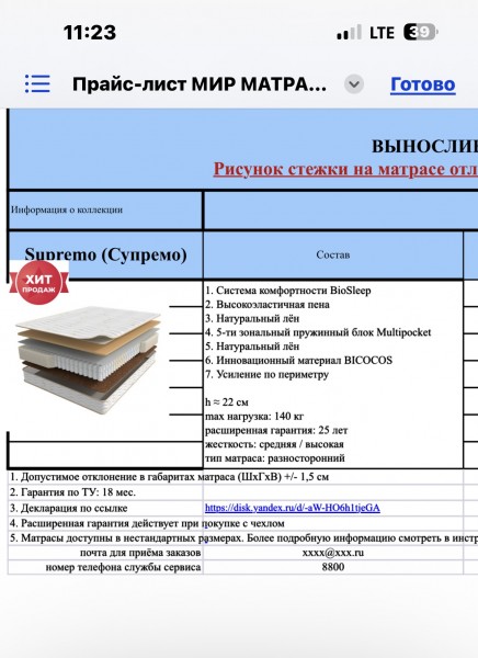 Новый матрас разносторонний: средний/высокий. Высота 22см. Натуральный лен. Внутри 5-зональный пружинный блок и биококос. Матрас не скручен. Возможна доставка ?